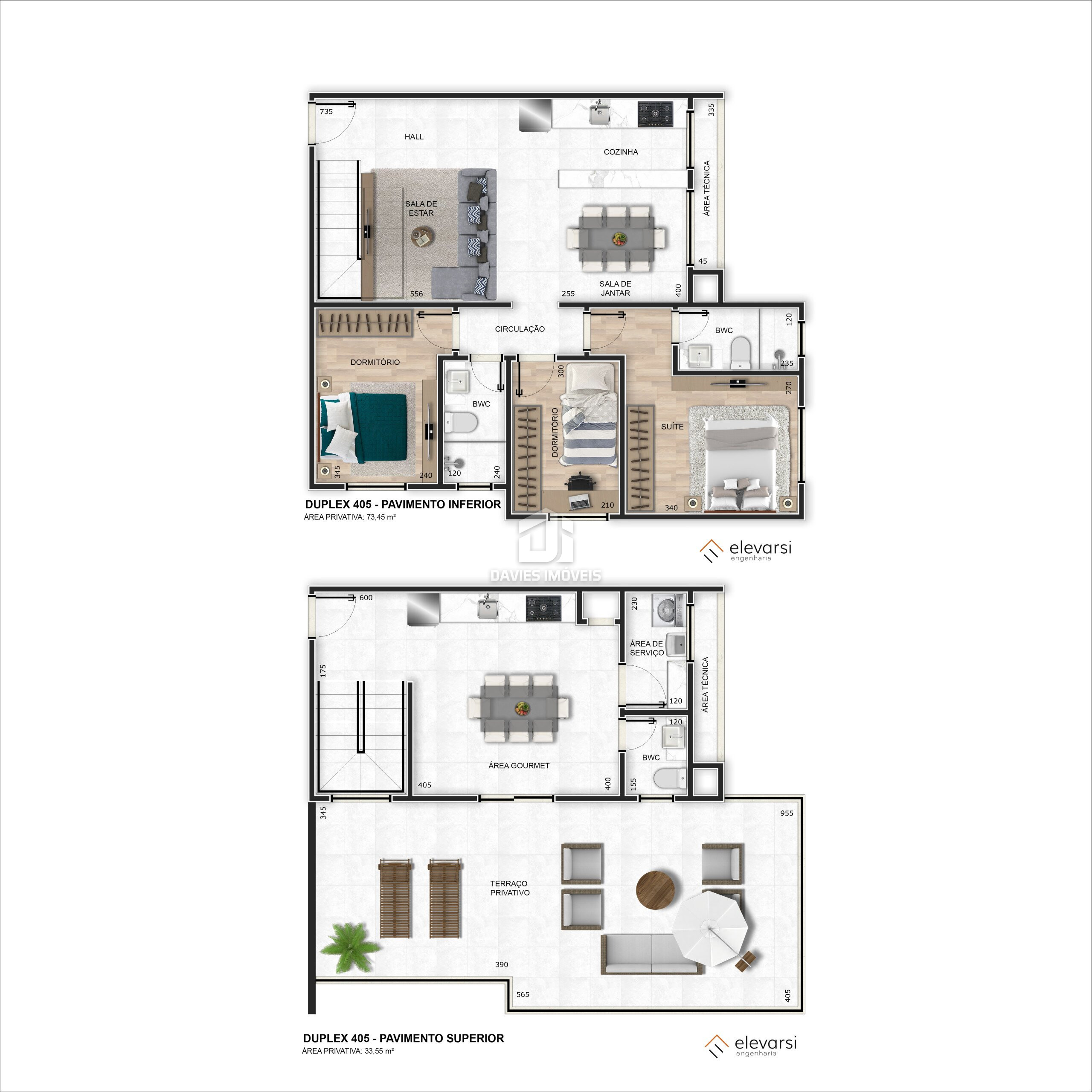 Pavimento superior conta com: